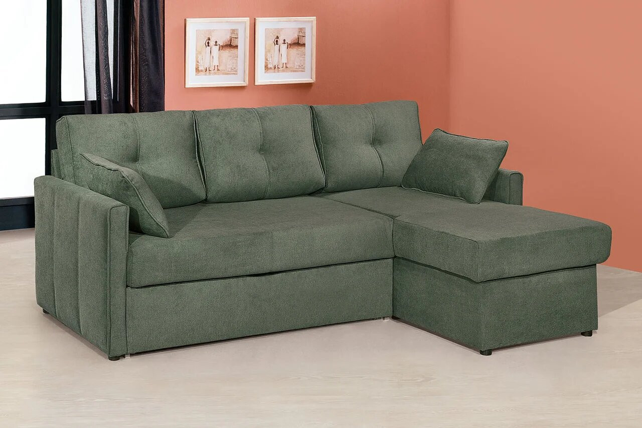 • Каркас диванной части, спального места и сиденья оттоманки: металлический