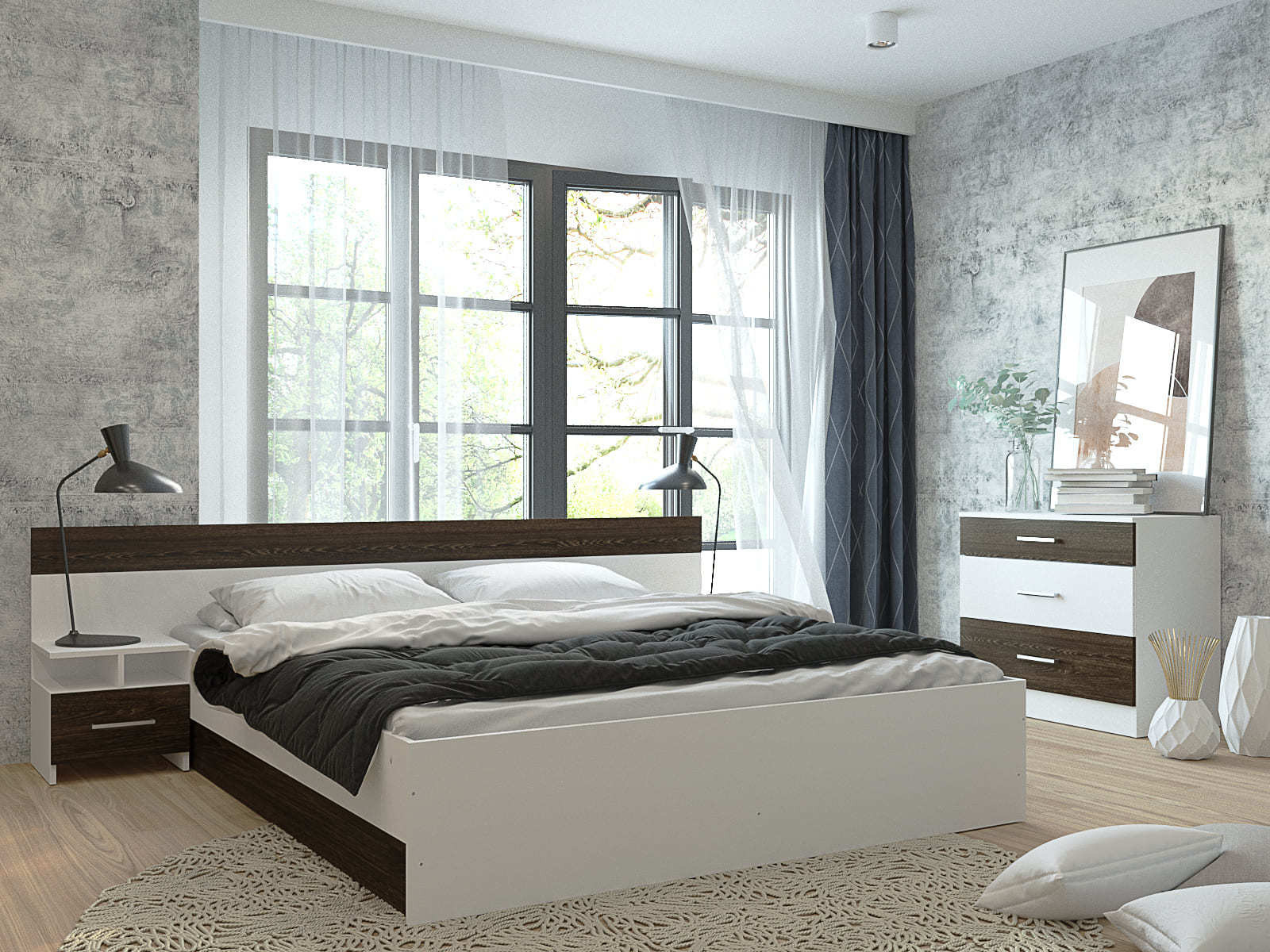 Бюджетная, но выполненная со вкусом спальня  будет способствовать здоровому сну и приятному пробуждению.